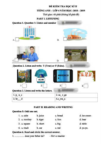 TIẾNG ANH – LỚP 4 NĂM HỌC: 2018 – 2019