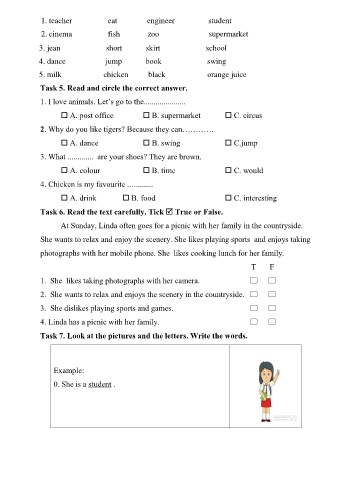 At Sunday, Linda often goes for a picnic with her family in the countryside.