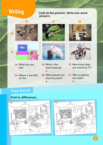 2A Where is the fish? 2B What animal can 2C Who is playing
