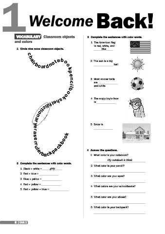 VocaBulary Classroom objects 3 Complete the sentences with color words.