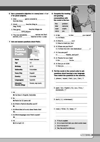 6 Use a possessive adjective or a name/noun + ’s or 8 Complete the meeting